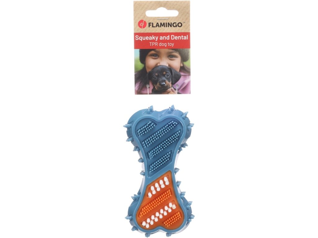 Hračka pro psy ve tvaru kosti je vyrobená z termoplastické gumy (TPR). Při žvýkání masíruje dásně a pomáhá omezovat tvorbu zubního plaku, čímž přispívá k přirozené péči o chrup. Pro ještě větší potěšení ze hry obsahuje pískátko.