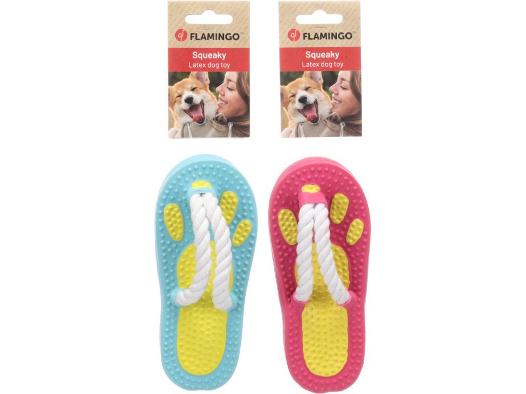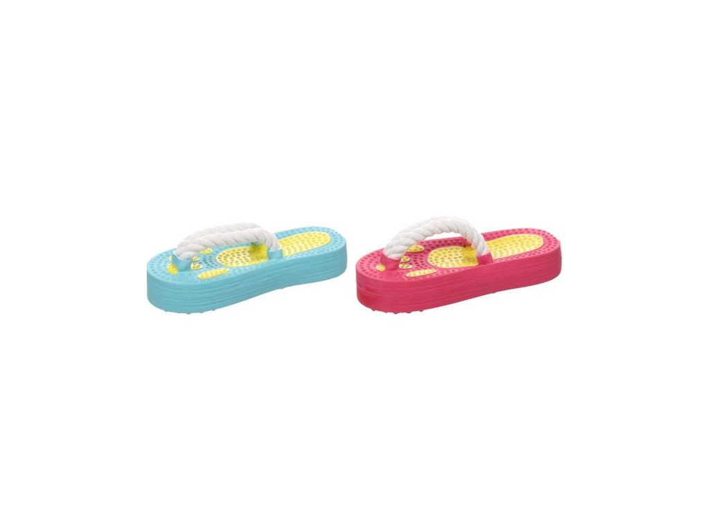 Nechejte svého čtyřnohého kamaráda vydovádět se s veselou plážovou žabkou Flippe. Bota je vyrobena z latexu a pro ještě větší zábavu obsahuje pískátko a provázek. Díky členitému povrchu se dobře drží v tlamě a jejím kousáním si pes masíruje dásně a čistí zuby.