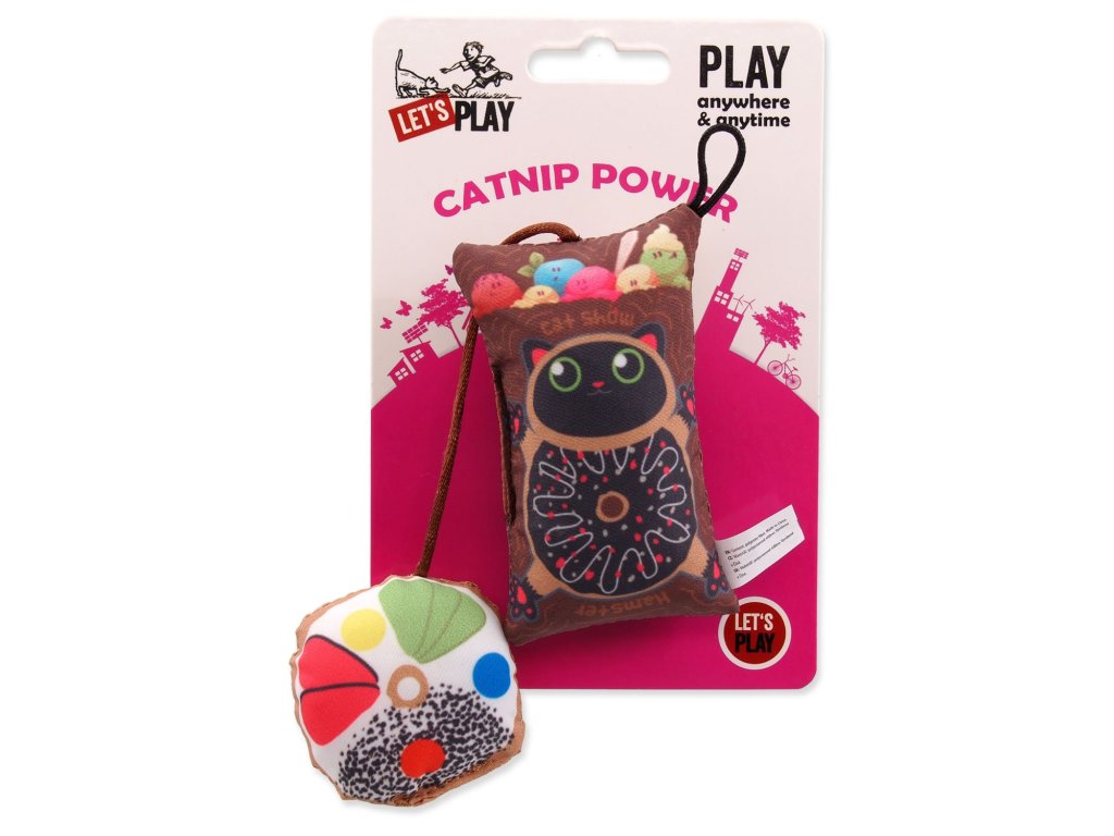 Hračka Let´s Play polštářek motiv kočka s catnip 9 cm