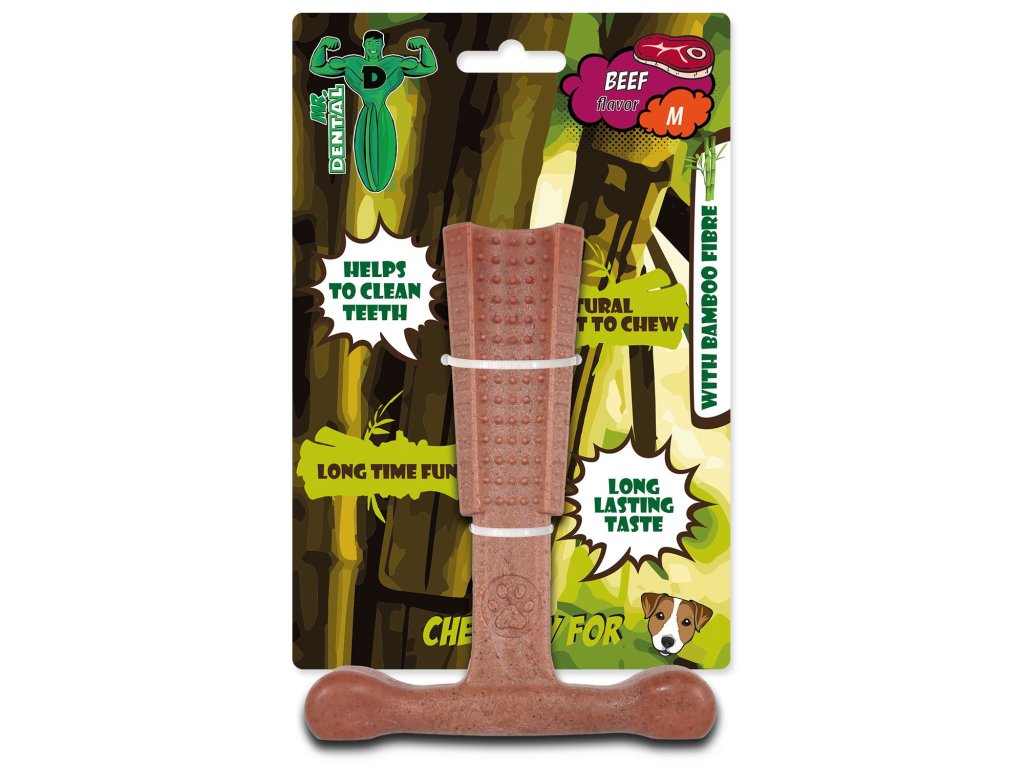 Žvýkací hračka Mr. Dental Bambone ve tvaru kladiva s hovězí vůní.