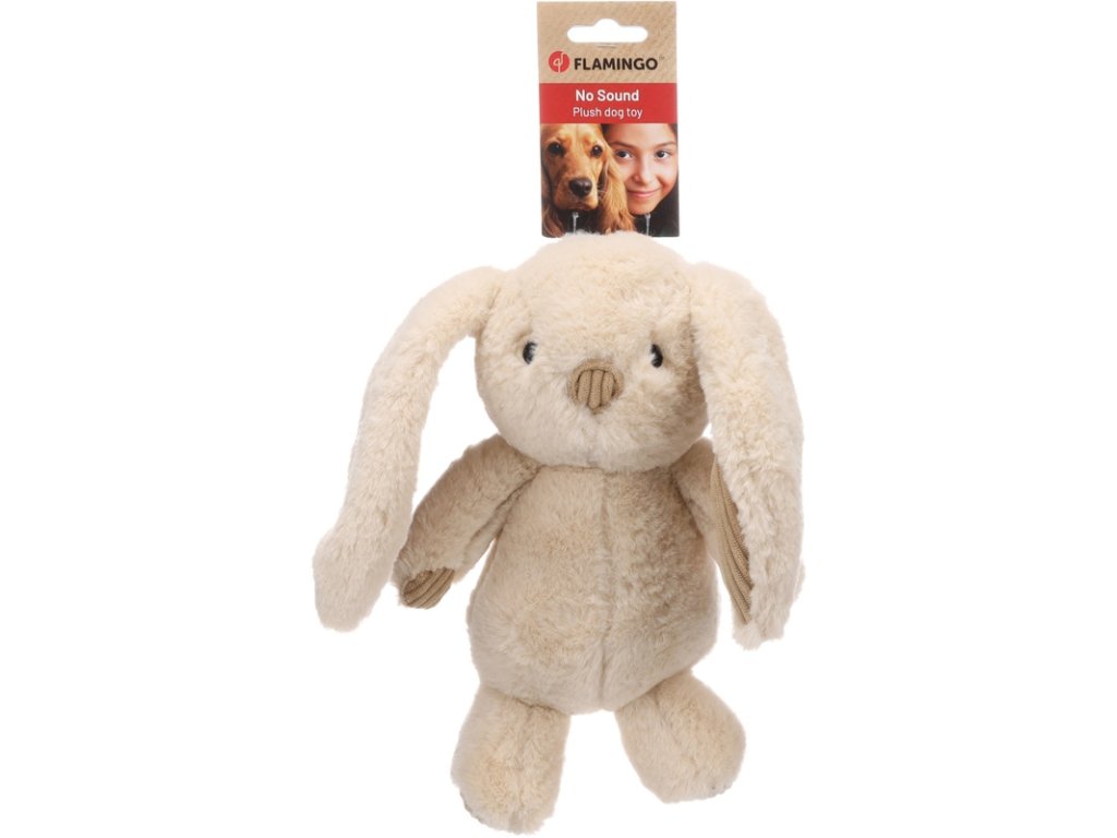 Plyšová hračka pro psy ve tvaru králíka je vyrobená z recyklovaného polyesteru. Díky měkkému materiálu a absenci zvuku je vhodná pro klidné hraní doma nebo při odpočinku. Ideální pro mazlení i aportování.