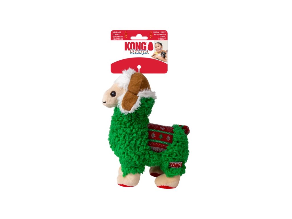 KONG Holiday Sherps Llama je veselý plyšový společník, který vnese do každé domácnosti vánoční atmosféru. Zabudované pískátko a šustivá výplň lákají k vzrušující hře, měkký plyš zase k mazlení. Díky dvojité vrstvě materiálu je hračka odolnější a snese i jemné kousání.