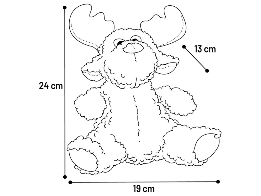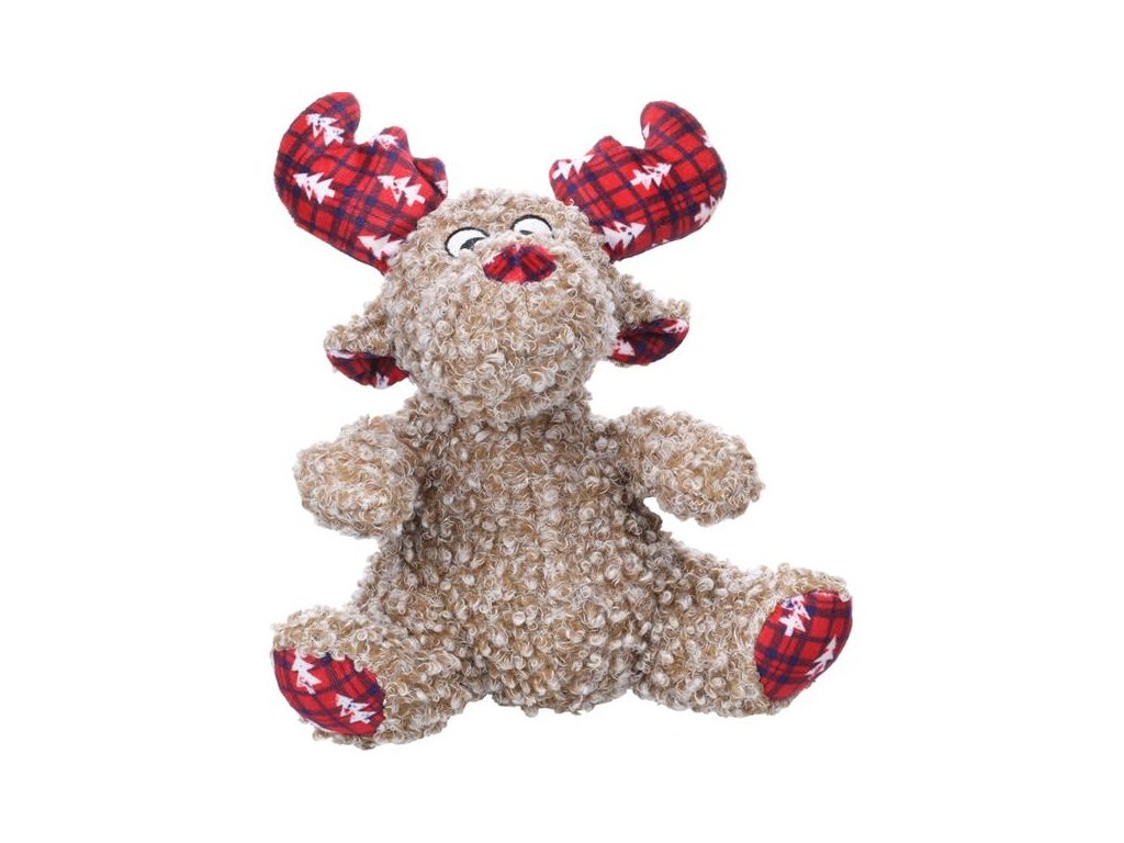 Vánoční hračka pro psy ve tvaru sedícího soba je vyrobena z měkkého plyše. Pro větší potěšení ze hry obsahuje sob pískátko.