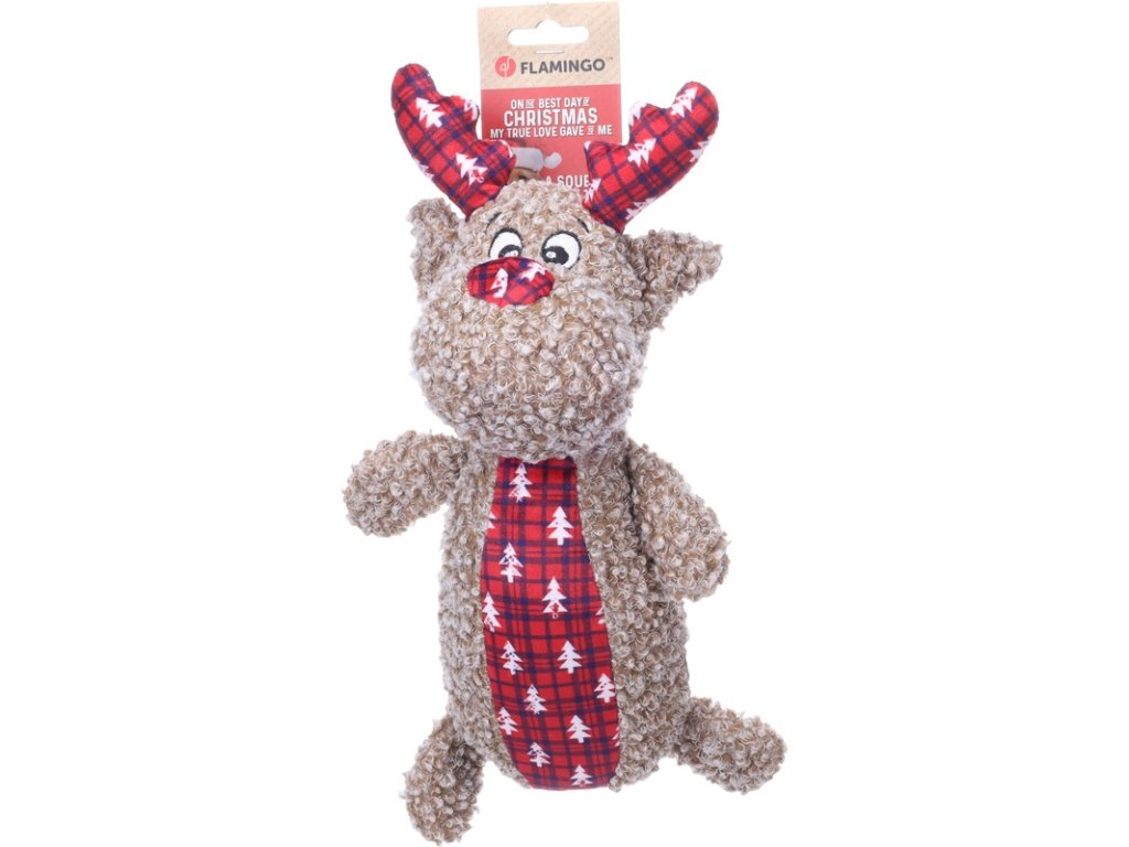 Vánoční hračka pro psy ve tvaru soba je vyrobena z měkkého plyše. Pro větší potěšení ze hry obsahuje sob pískátko.