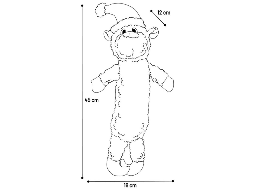 Vánoční hračka pro psy ve tvaru soba je vyrobena z měkkého plyše. Má dlouhé tělo a vánoční čepičku. Pro větší potěšení ze hry obsahuje sob pískátko.