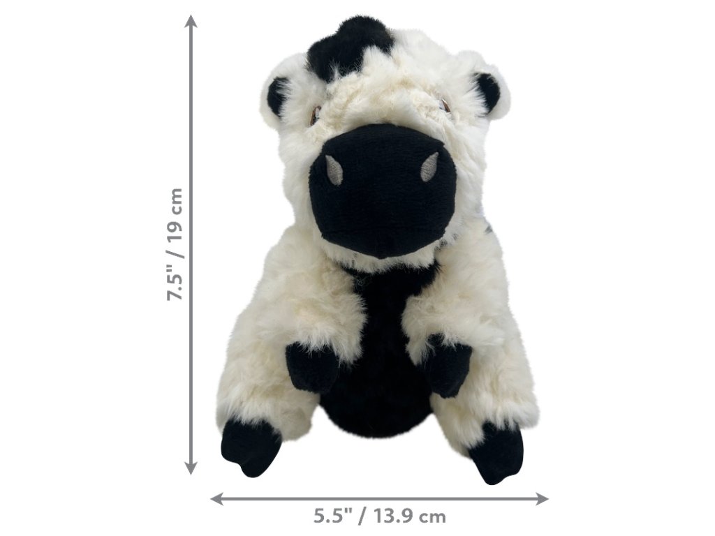Hračka KONG Comfort Tykes Cow pro psy je roztomilé telátko z extra měkkého plyše vhodné pro chvíle hraní i mazlení. Díky vyjímatelnému pískátku s hlubším chrochtavým zvukem lze hru přizpůsobit potřebám vašeho psa – s pískáním pro aktivní hru, bez něj pro klidnější chvíle.