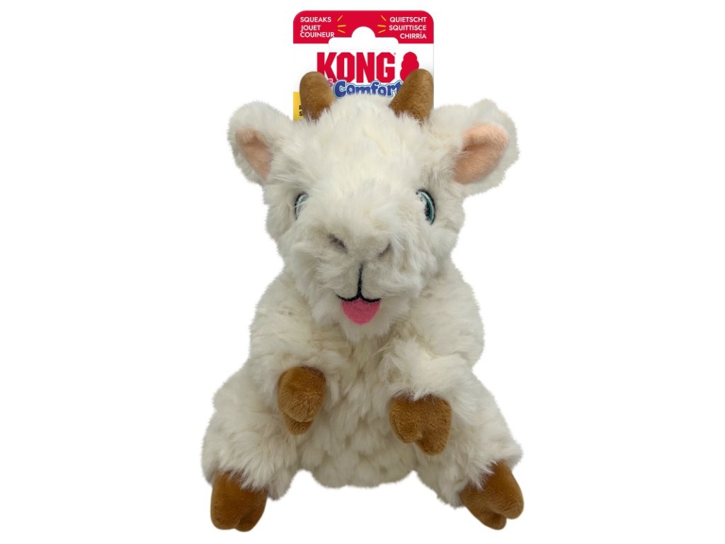 Hračka KONG Comfort Tykes Goat pro psy je roztomilé kůzlátko z extra měkkého plyše vhodné pro chvíle hraní i mazlení. Díky vyjímatelnému pískátku s hlubším chrochtavým zvukem lze hru přizpůsobit potřebám vašeho psa – s pískáním pro aktivní hru, nebo bez něj pro klidnější chvíle.