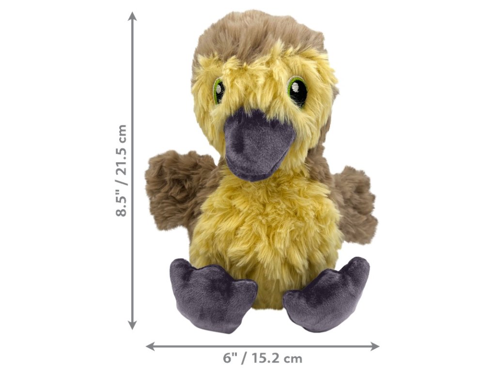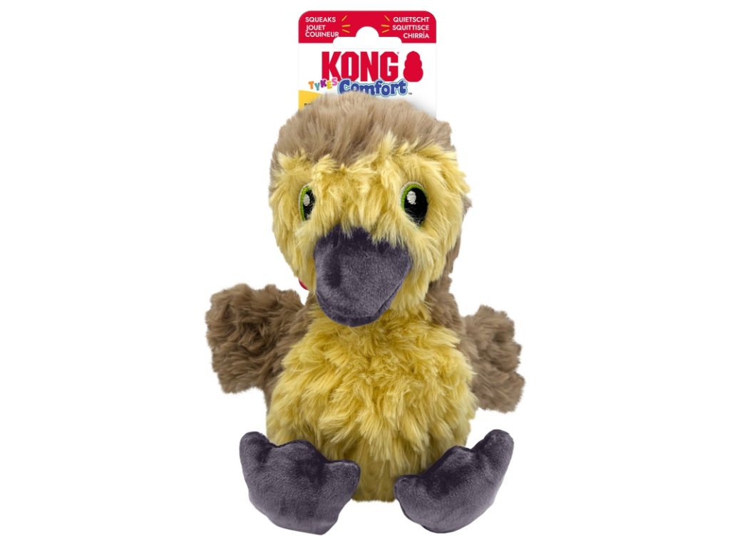 Hračka KONG Comfort Tykes Gosling pro psy je roztomilé káčátko z extra měkkého plyše vhodné pro chvíle hraní i mazlení. Díky vyjímatelnému pískátku s hlubším chrochtavým zvukem lze hru přizpůsobit potřebám vašeho psa – s pískáním pro aktivní hru, bez něj pro klidnější chvíle.
