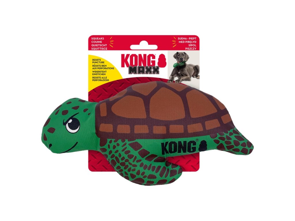 Hračka KONG MAXX Friends Turtle pro psy je extrémně odolná a zároveň neodolatelně roztomilá. Je do posledního detailu navržená tak, aby snesla i ty nejdivočejší hrátky. Materiál, který je až pětkrát odolnější vůči protržení než běžný plyš, zaručuje dlouhotrvající zábavu. Dvě vrstvy tkaniny a pevné švy šité supersilnou nití poskytují mimořádnou pevnost i při intenzivní hře. Zabudované pískátko udržuje pozornost psa a motivuje ke hře. Plyšová želva je ideální jak pro venkovní aportování, tak pro vnitřní dovádění.