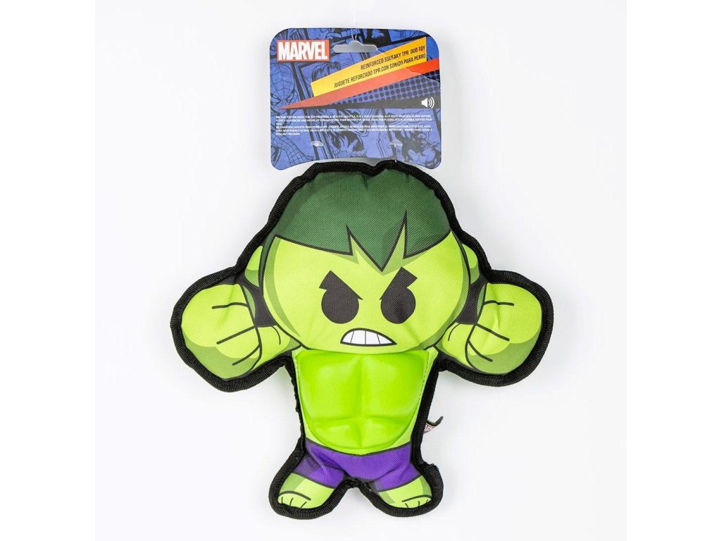 Hračka s motivem Marvel Hulk, kterou si zamiluje každý pejsek. Materiál: polyester, odolný proti rozkousání Pro pejsky i kluky.