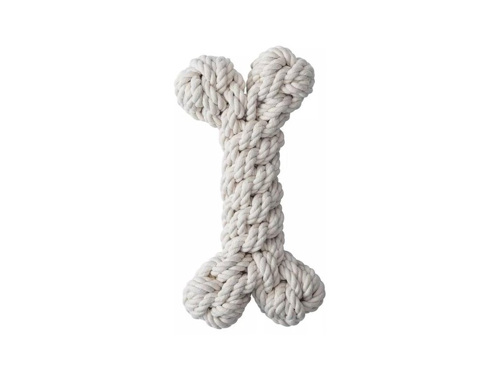 Bavlněné přetahovadlo pro psy ve tvaru kosti je spletené z pevných přírodních provázků. Hodí se pro přetahování, aportování i kousání. Bavlněné provázky během hry přirozeně čistí chrup a přispívají tak ke zdraví zubů a dásní.