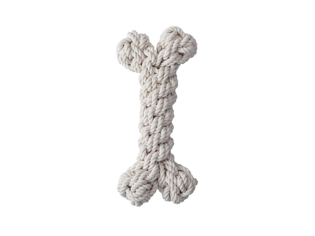 Extra velké bavlněné přetahovadlo pro psy velkých plemen ve tvaru kosti je spletené z pevných přírodních provázků. Hodí se pro přetahování, aportování i kousání. Bavlněné provázky během hry přirozeně čistí chrup a přispívají tak ke zdraví zubů a dásní.