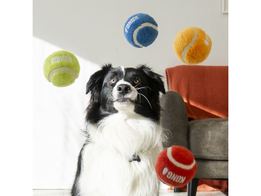 Sada dvou míčků KONG Sport Softies je ideální volbou pro psy, kteří milují aportování. Míčky kombinují odolné gumové jádro s hebkým flísovým povrchem, který je k psím zubům a dásním šetrnější než povrch běžných tenisových míčků. Neobsahují pískátko a mají výrazné barvy, abyste je vy i váš pes snadno našli. Perfektní pro domácí i venkovní hraní!