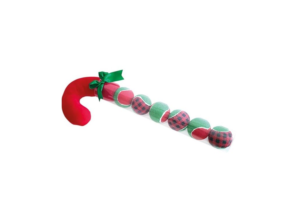 Sada šesti tenisových míčků s plyšovou hračkou ve vánočních barvách je ideálním dárkem pod stromeček pro psy, kteří milují aportování. Míčky ani hračka neobsahují pískátko.
