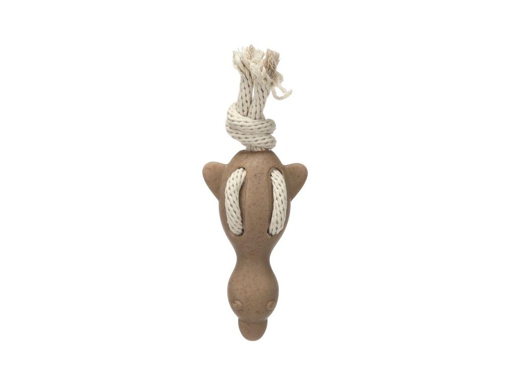 Hračka pro psy ve tvaru kachny je vyrobená z termoplastické gumy (TPR) s bambusovým vláknem a propletená provazem s uzlem. Při kousání masíruje dásně a pomáhá omezovat tvorbu zubního plaku, čímž přispívá k přirozené péči o chrup. Pro větší vzrušení ze hry vydává kachna při stisknutí zvuk.