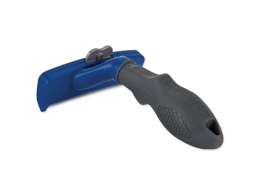 - Vyčesávací hrana z nerezové oceli proniká hluboko do srsti zvířete, kde šetrně a lehce odstraňuje uvolněné chlupy z podsady, aniž by poranila kůži nebo poškodila srst.