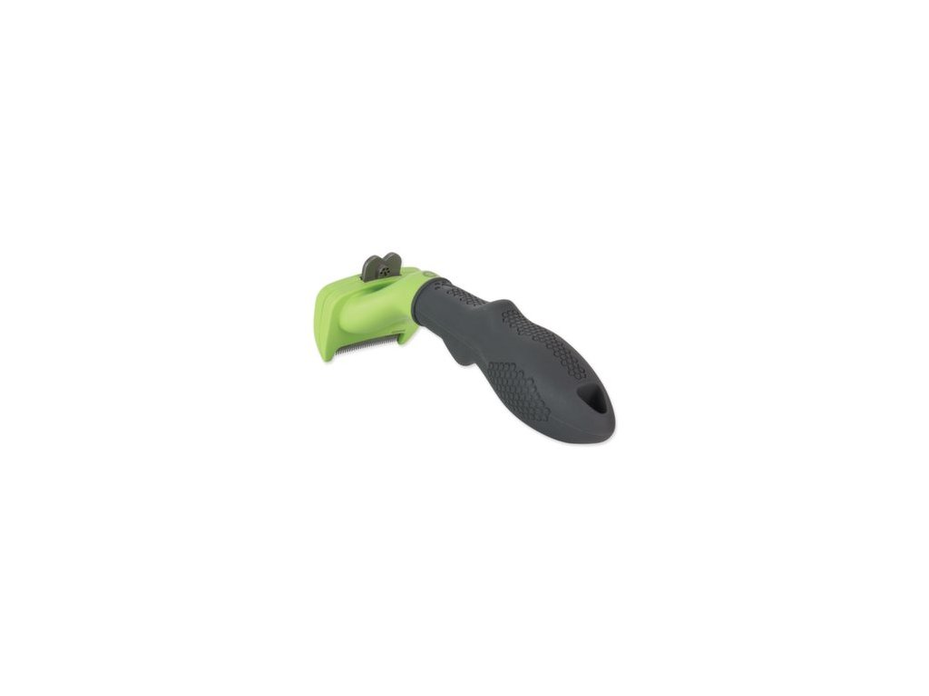 - Vyčesávací hrana z nerezové oceli proniká hluboko do srsti zvířete, kde šetrně a lehce odstraňuje uvolněné chlupy z podsady, aniž by poranila kůži nebo poškodila srst.
