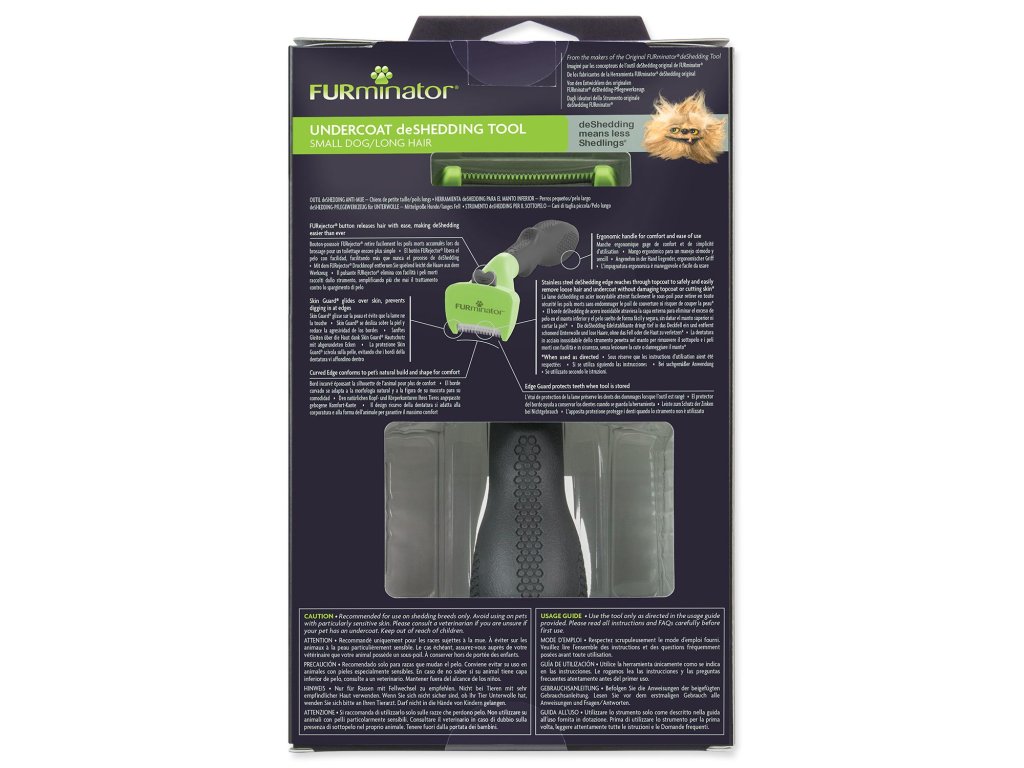 FURminator® hrablo k vyčesávání podsady pro psy malých plemen a kočky o hmotnosti do 9 kg s dlouhou srstí. Odstraňuje až 99 % uvolněných chlupů.