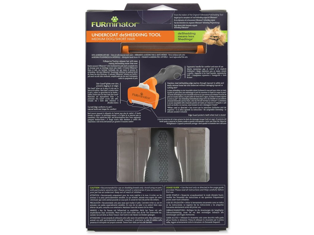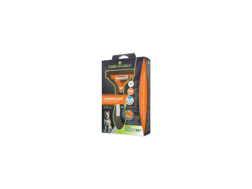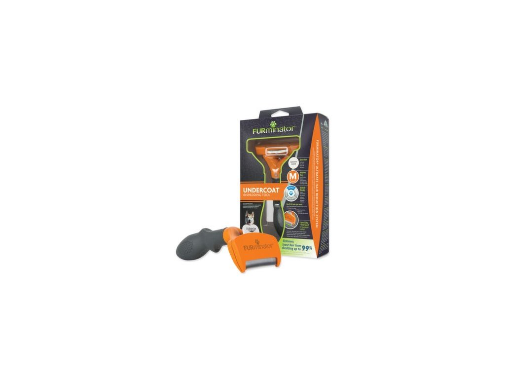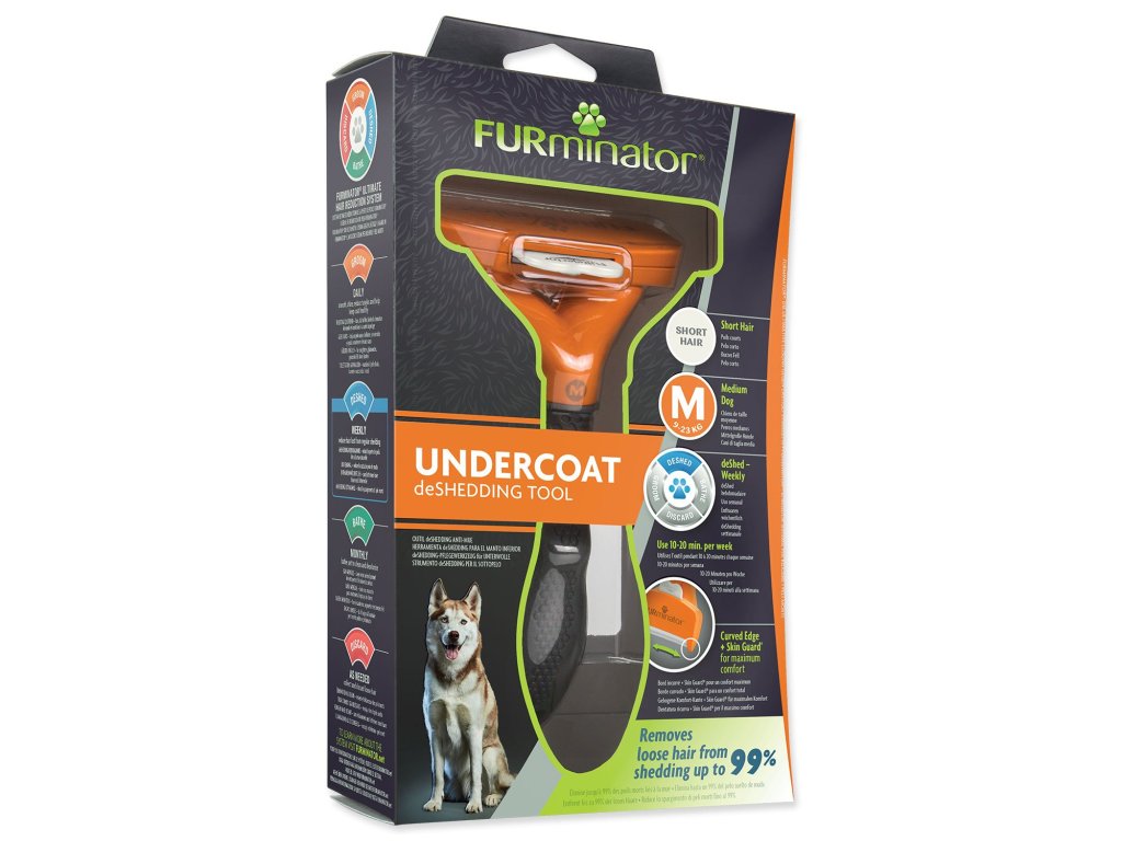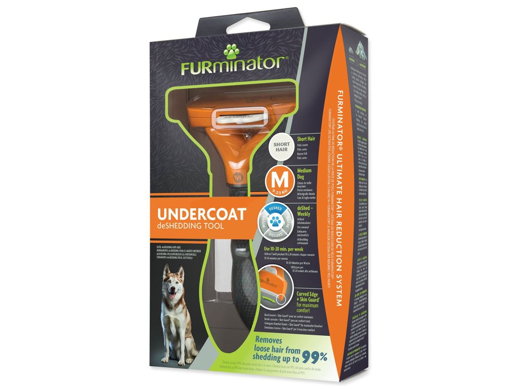 FURminator® hrablo k vyčesávání podsady pro psy středních plemen o hmotnosti do 9-23 kg s krátkou srstí. Odstraňuje až 99 % uvolněných chlupů.