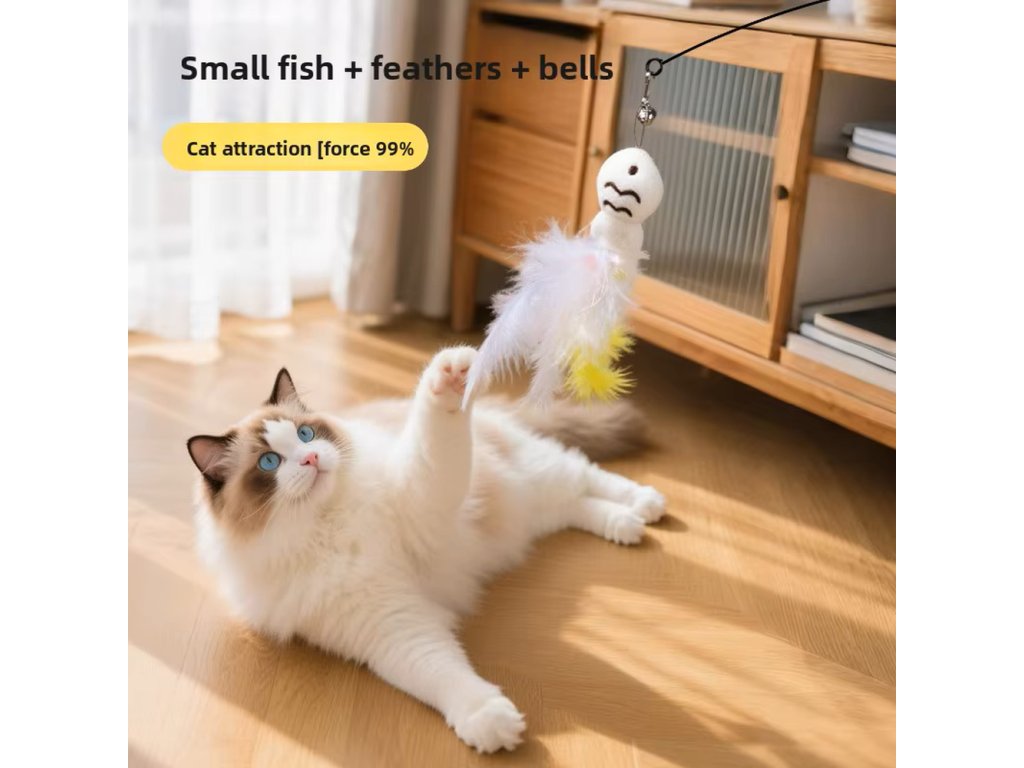 Interaktivní hračka pro kočky – udice s pírky a rolničkou je zábavné kočičí škádlítko s přísavkou, které podporuje přirozený lovecký instinkt, pohyb a aktivní hru 🐱🪶. Díky pružné ocelové tyči a hračce s pírky se přívěsek při každém doteku pohybuje jako skutečná kořist, což kočku okamžitě motivuje ke skákání, chytání a lovu.