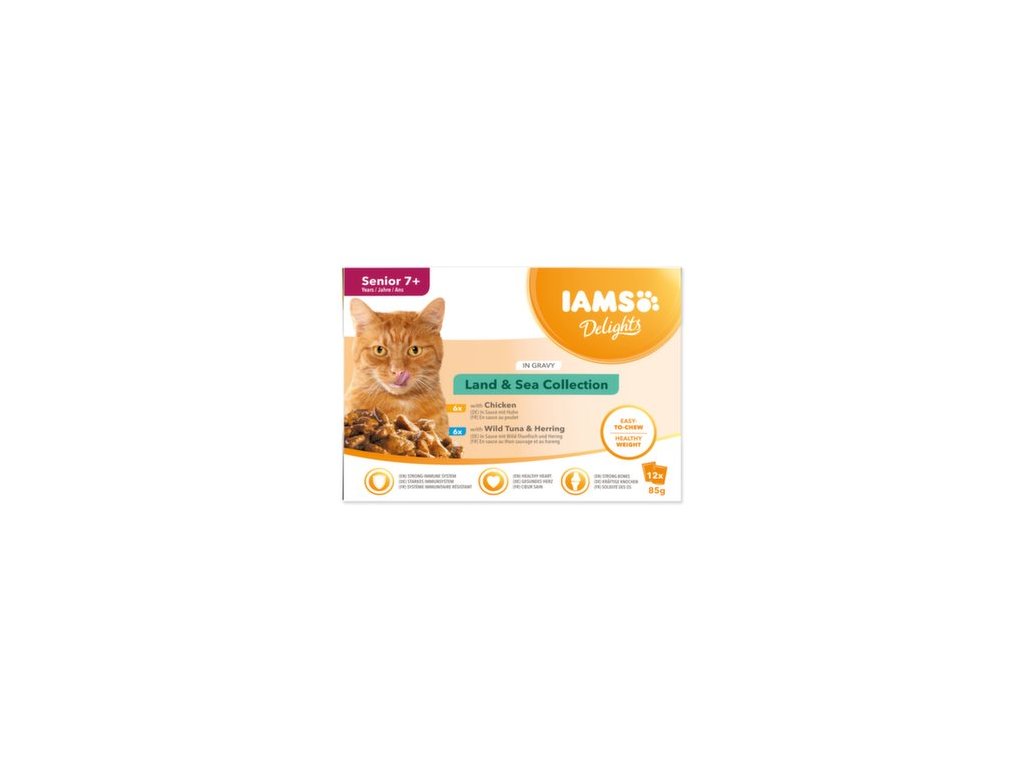 Kapsička IAMS Delights Senior mořské a suchozemské maso v omáčce 1020g (12x85g)