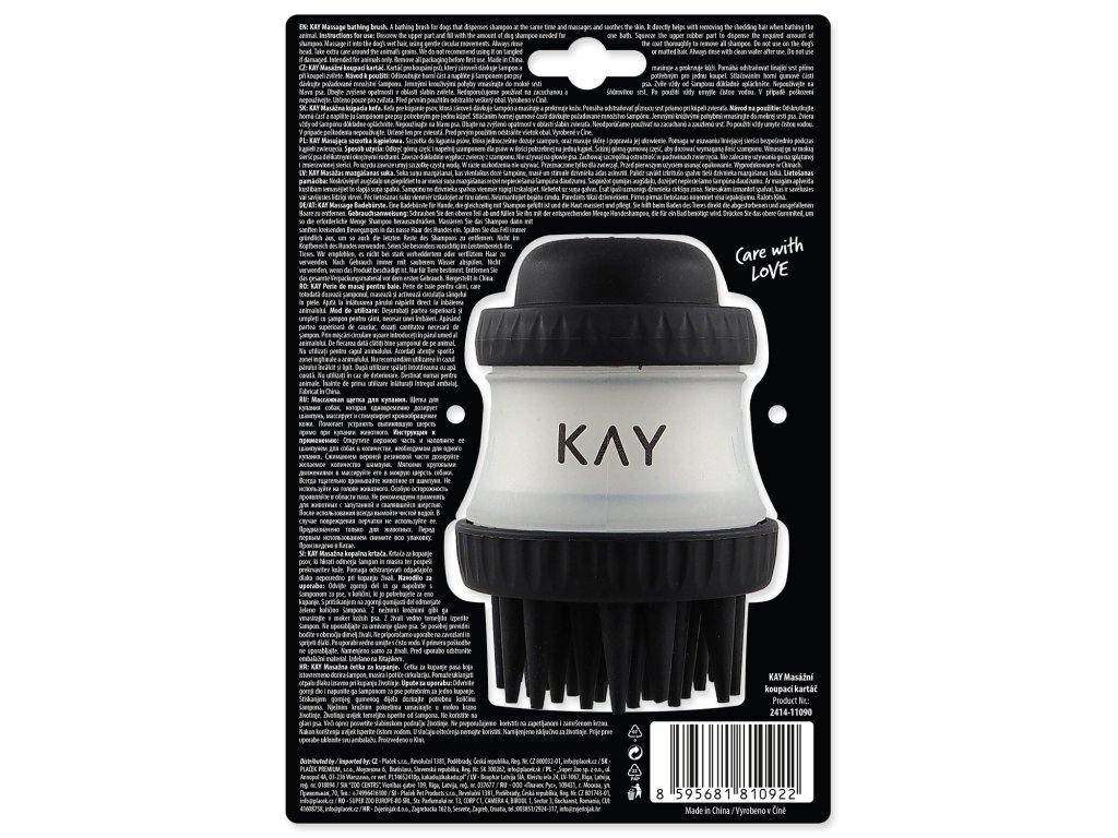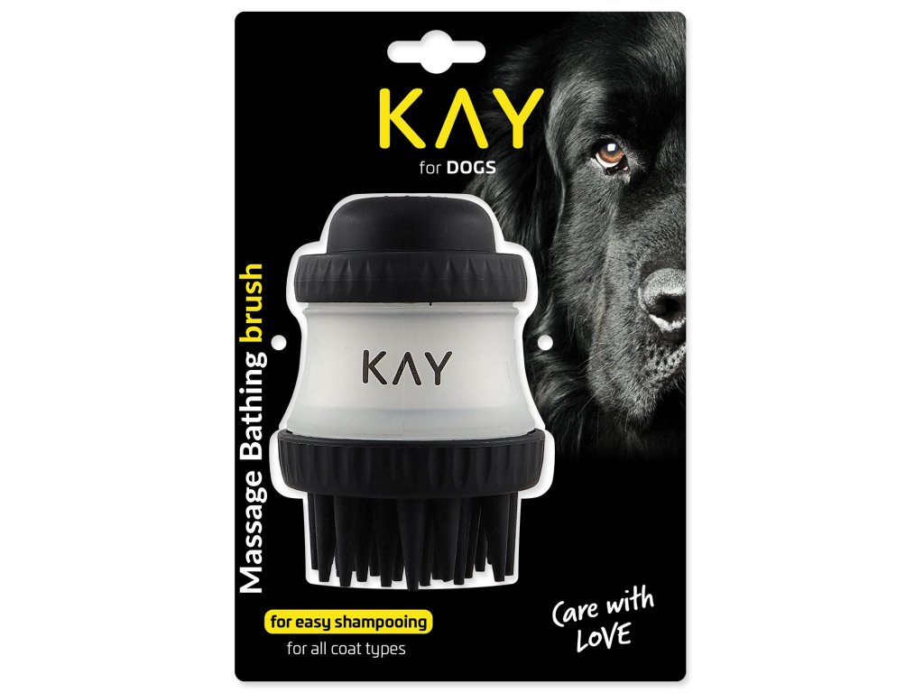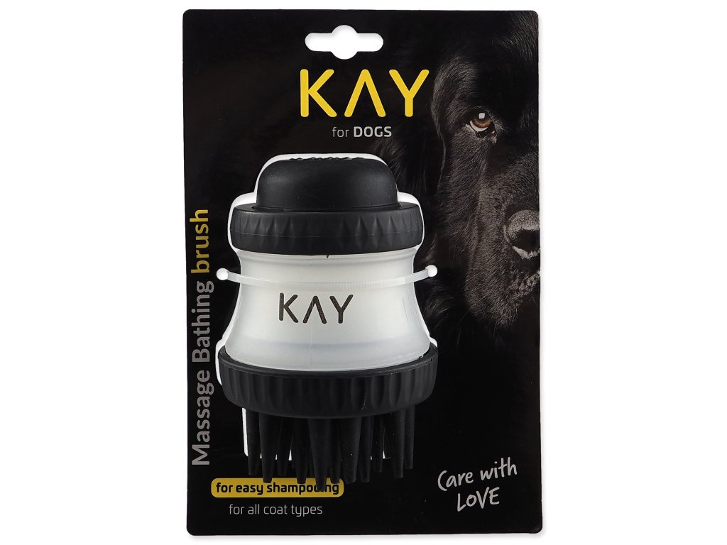 Kartáč pro koupání psů, který zároveň dávkuje šampon a masíruje a prokrvuje kůži. Pomáhá odstraňovat línající srst přímo při koupeli zvířete.