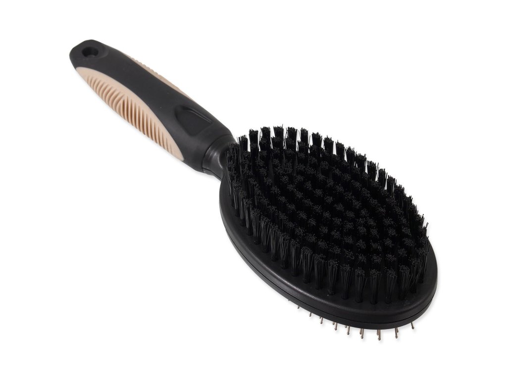 Strana s nylonovými štětinami pomáhá účinně odstraňovat nečistoty a uvolněnou srst.