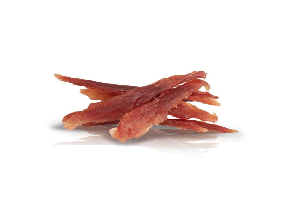 Šetrně sušené kachní plátky z čerstvého kachního masa s nízkým obsahem tuku. Je to 100 % přírodní masový pamlsek s vysokým obsahem masa. Neobsahuje žádné obiloviny, konzervanty a ochucovadla. pro svoji vůni a měkkou konzistenci je vhodný pro všechna plemena psů, všech věkových kategorií.