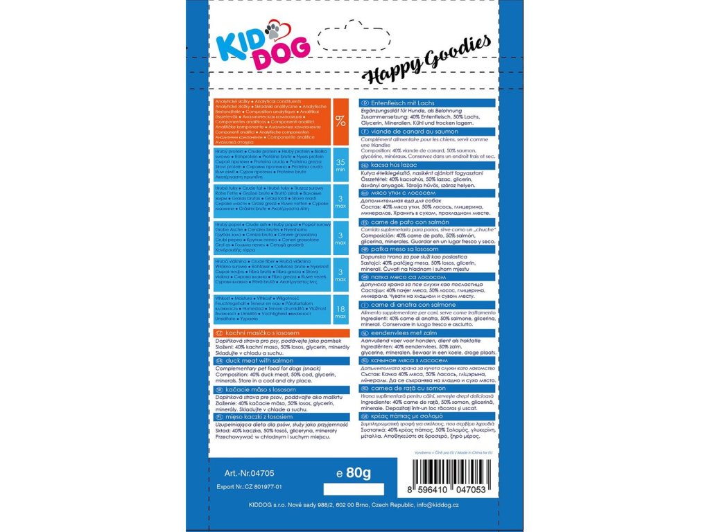 - složení: 40 % kachna, 50 % losos, glycerin, minerály