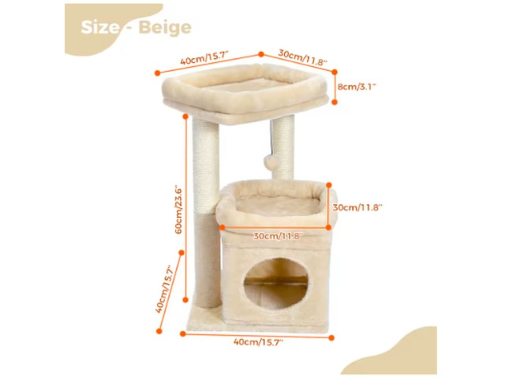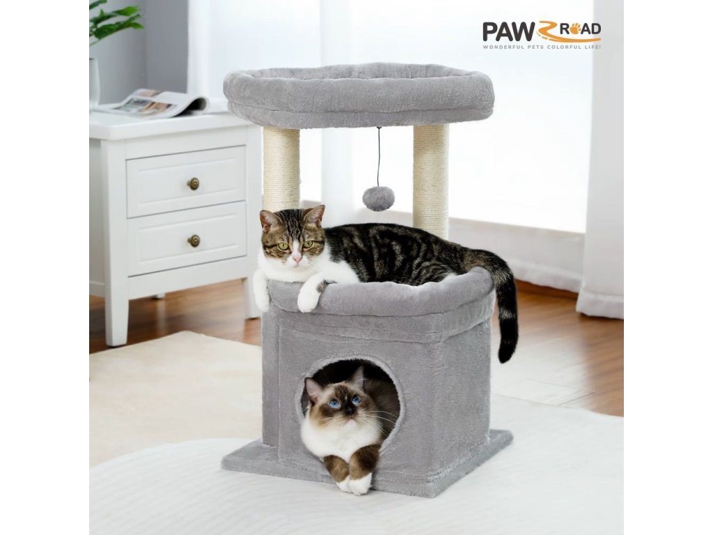 Kočičí strom s útulným domečkem a širokým horním bidýlkem nabízí vaší kočce dokonalé místo pro hraní, škrábání i odpočinek. Díky kompaktnímu designu se snadno vejde i do menšího bytu, přesto poskytuje dostatek prostoru pro všechny kočičí aktivity. Měkký plyšový povrch zaručuje maximální pohodlí, zatímco přírodní sisalová škrabadla jsou ideální pro broušení kočičích drápků. Plyšová bambulka podporuje zábavu a probouzí lovecké instinkty. Kočičí strom je stabilní, pevný a krásně ladí s interiérem.