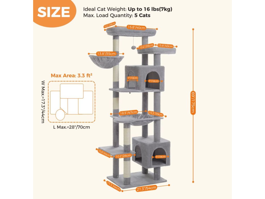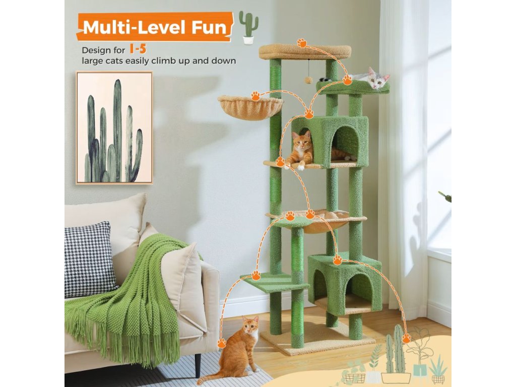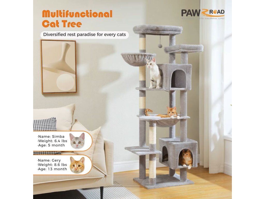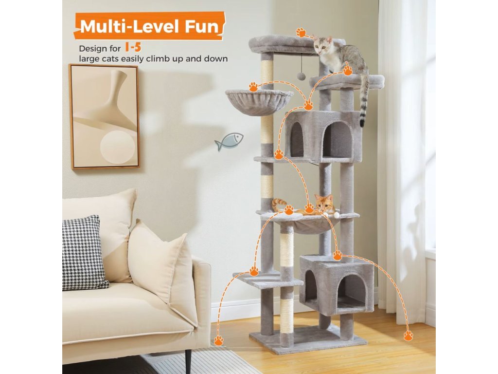 Dopřejte své kočce luxusní prostor pro hraní, šplhání i odpočinek! Tento velký 7patrový kočičí strom je ideální pro dospělé kočky do 9 kg a nabízí nespočet možností k objevování i lenošení.