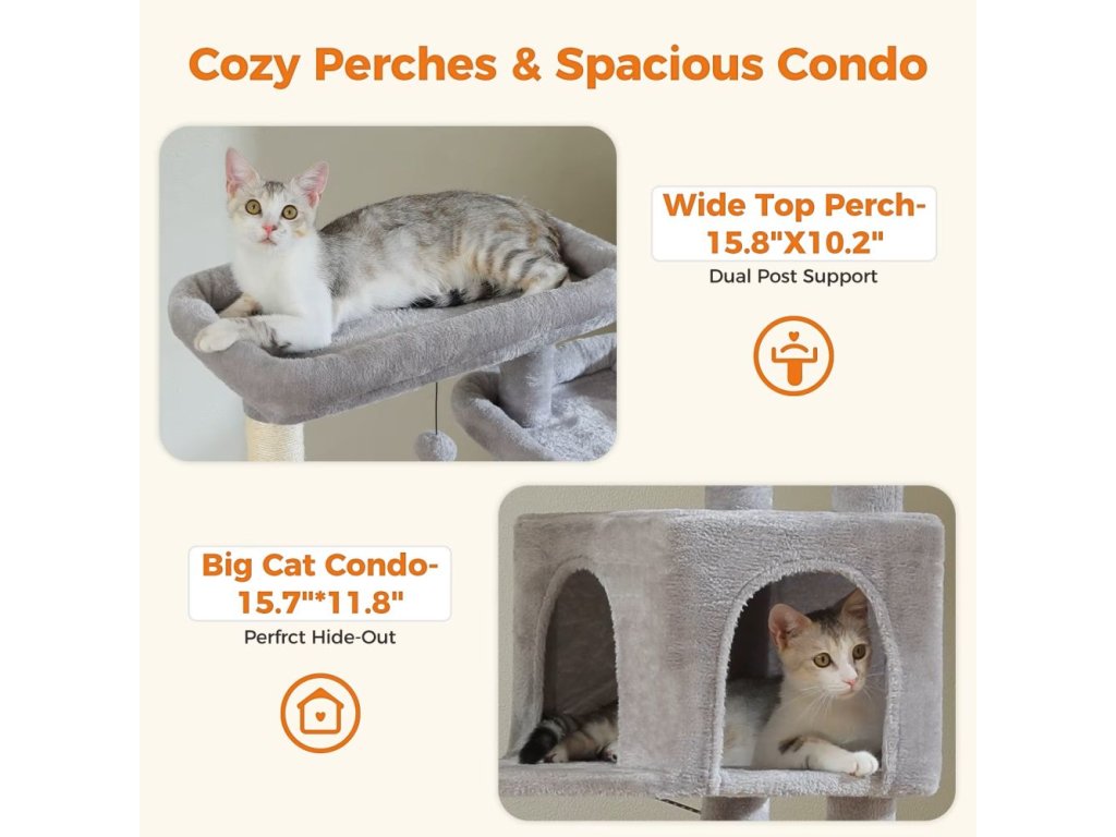 🐈⬛ Více velkých domečků a pelíšků: dostatek prostoru pro pohodlný spánek, pozorování okolí i relaxaci – ideální pro více koček.