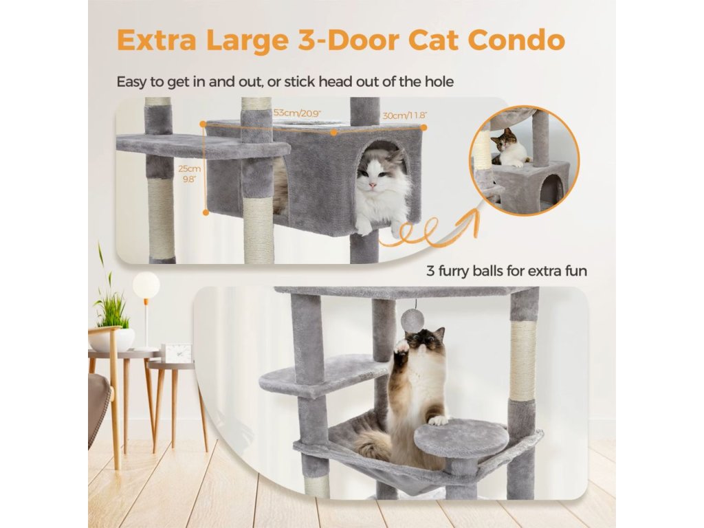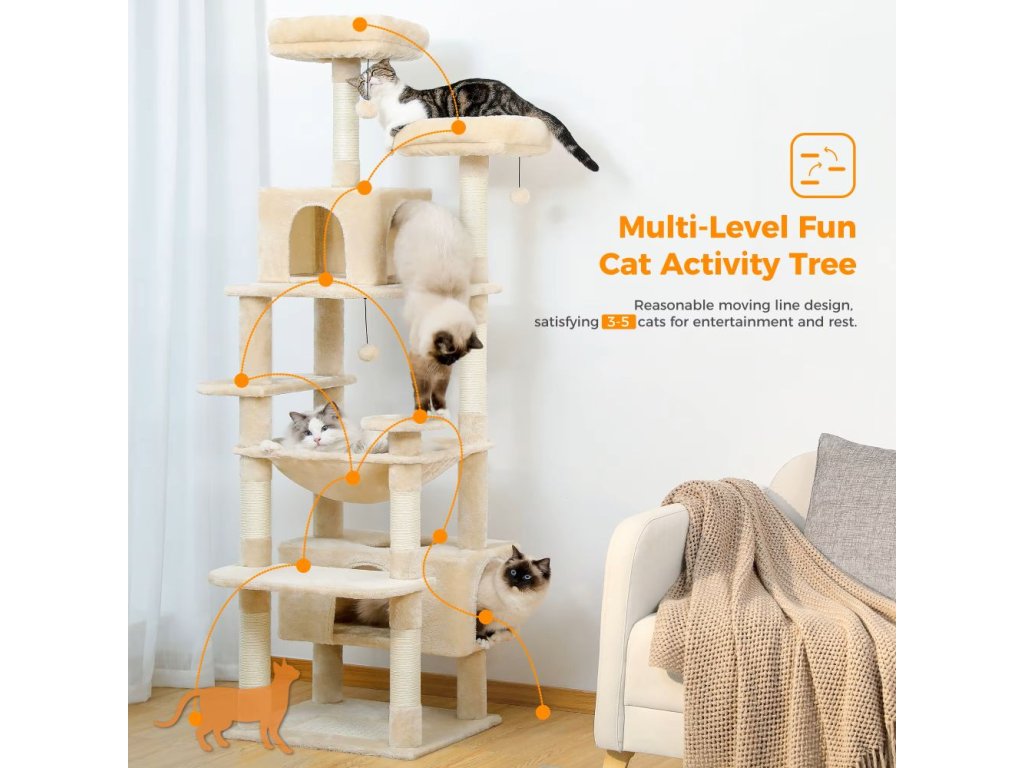 Dopřejte svým kočkám luxusní prostor pro lezení, hraní i odpočinek! Tento super velký kočičí strom o výšce 183 cm je ideální pro 4–5 velkých koček, které milují pohyb i společné lenošení.