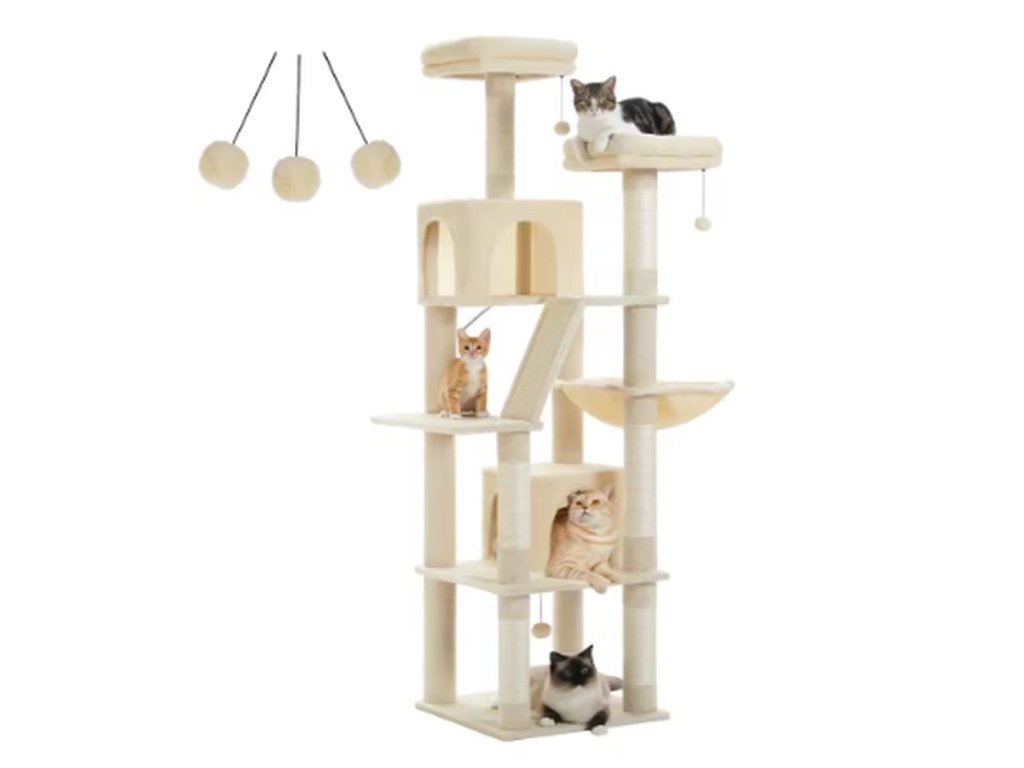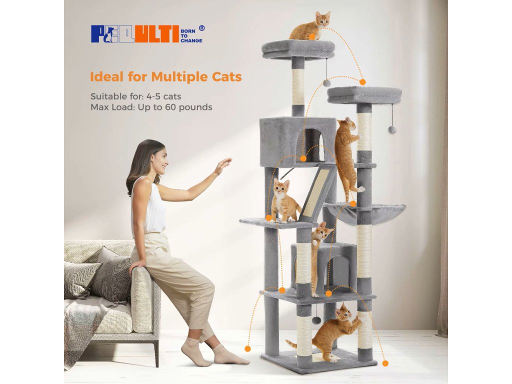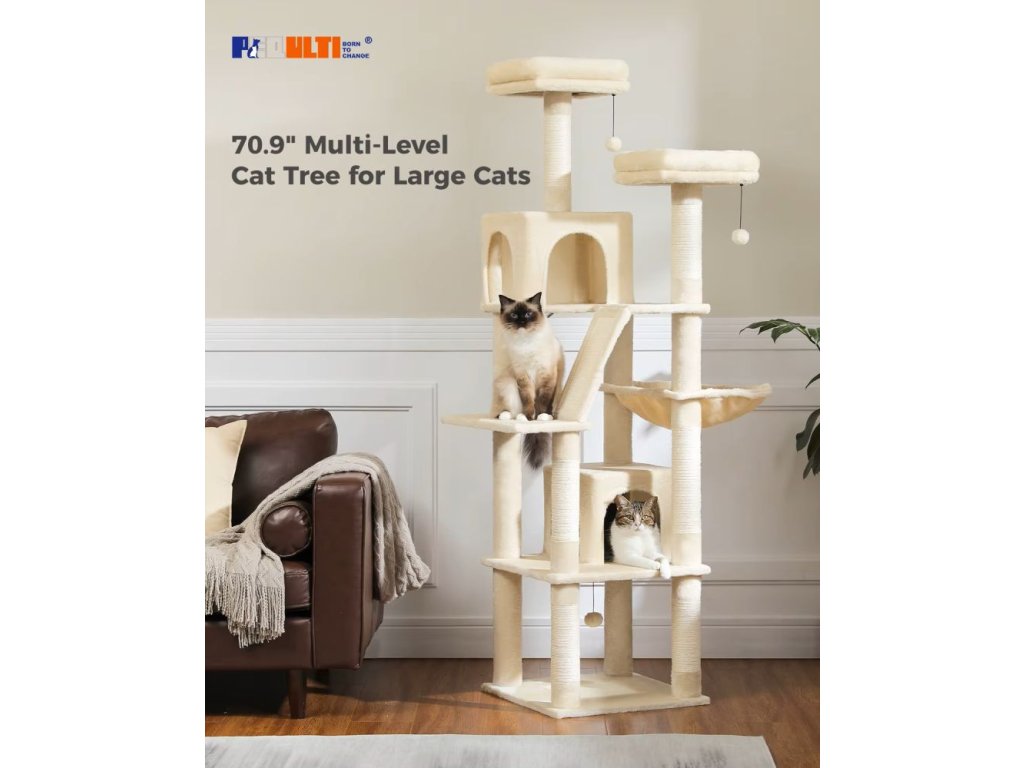 Dopřejte svým kočkám luxusní prostor pro hraní, škrábání i odpočinek! Tento velký víceúrovňový kočičí strom o výšce 182,5 cm nabízí spoustu zábavy a pohodlí pro vaše chlupaté mazlíčky.