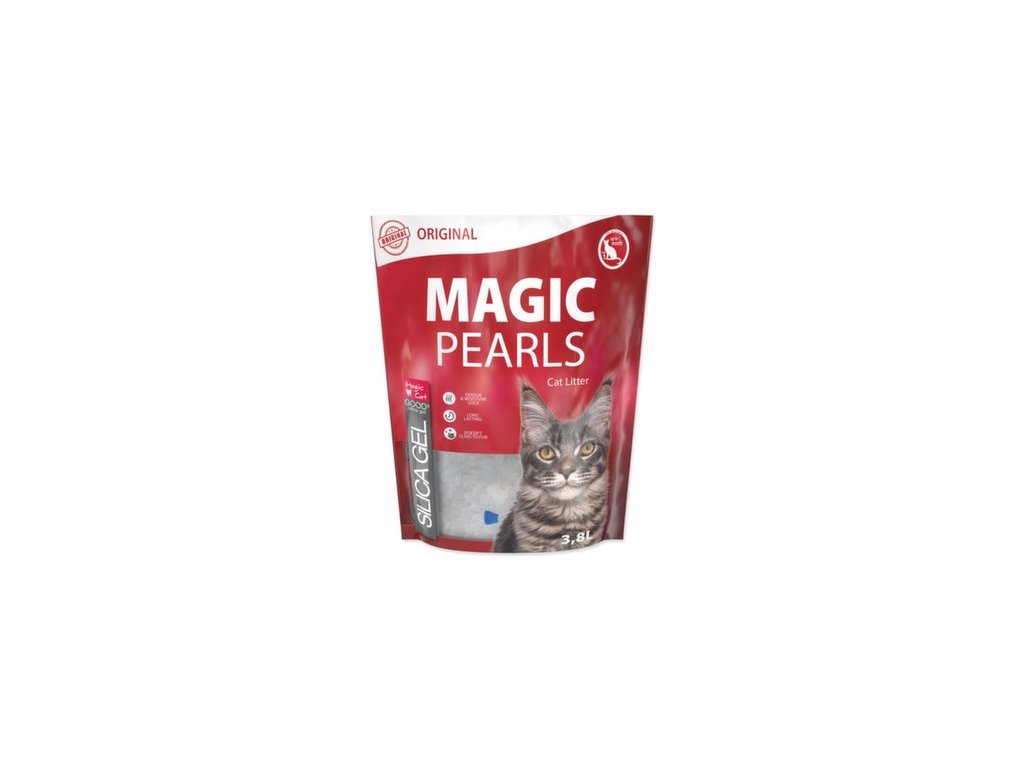 Neparfémované silikátové stelivo pro kočky. Díky mikropórům na sebe stelivo velice rychle váže tekutiny, které uzamkne uvnitř krystalků a eliminuje nepříjemný zápach. Tím zároveň zabraňuje množení nebezpečných bakterií. Díky tomuto inovativnímu procesu má stelivo Magic Pearls extrémní savost a udržuje toaletu suchou a čistou. Stelivo Magic Pearls je bezprašné a neulpívá na tlapkách a srsti zvířat, takže není kočkami vynášeno mimo toaletu. Stelivo je vhodné i pro dlouhosrstá plemena koček. Stelivo Magic Pearls v toaletě vydrží absorbovat pachy a vlhkost až 4 týdny (při použití jednou kočkou), proto je jeho použití také velice ekonomické, není třeba jej měnit tak často jako jiné druhy steliv.