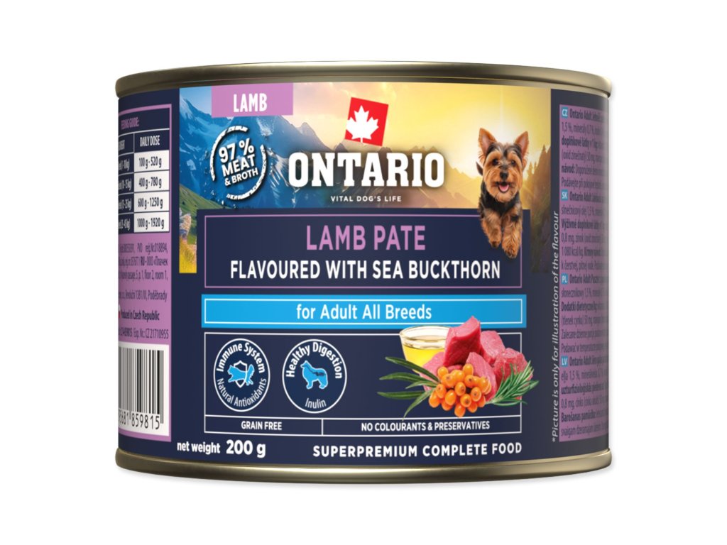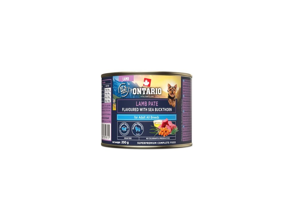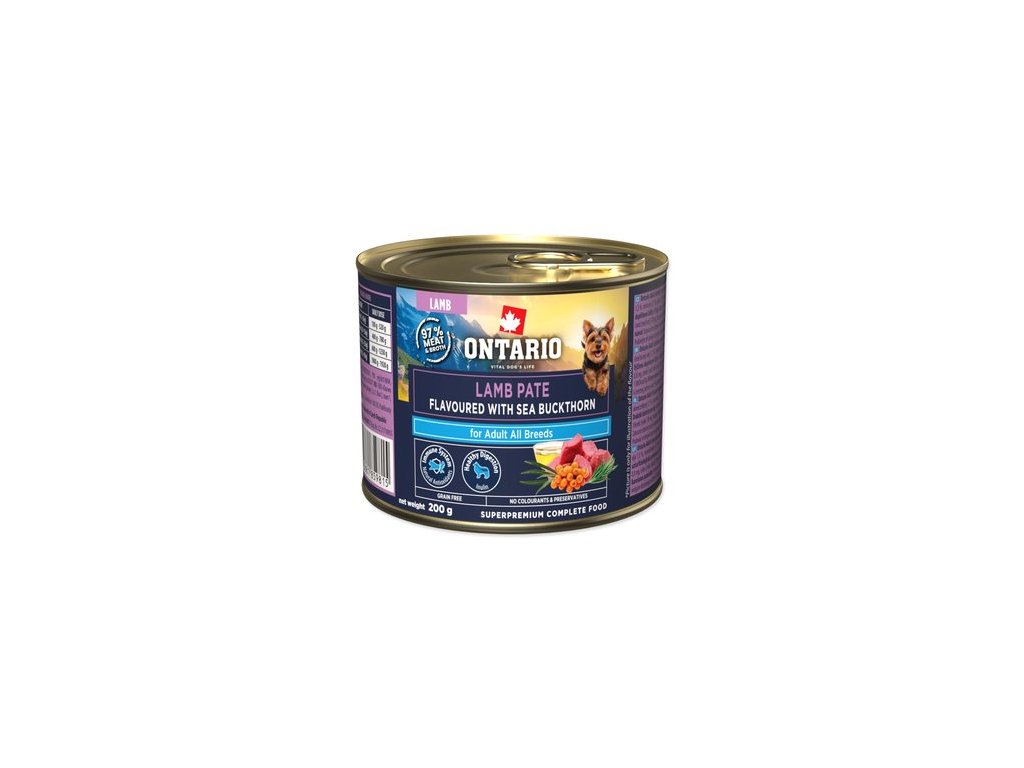 Konzerva Ontario Adult jehněčí pate s příchutí rakytníku 200 g