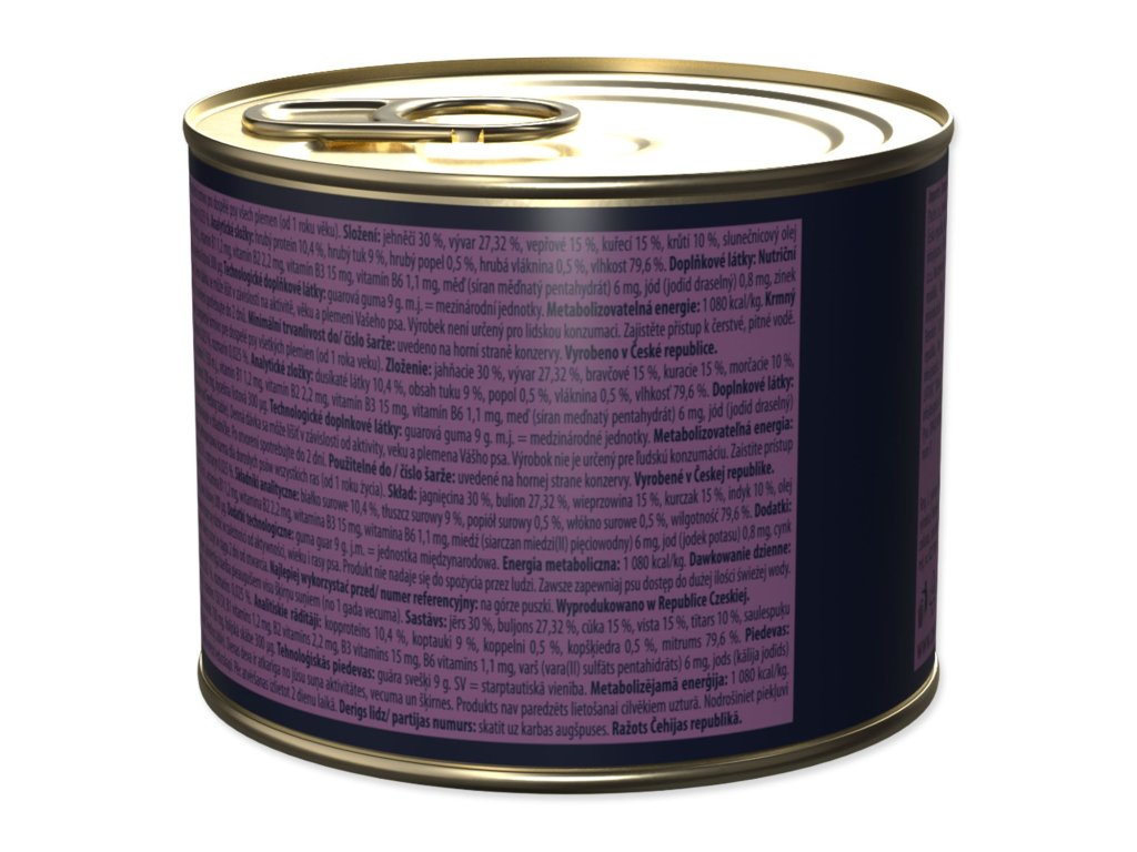 Jehněčí maso je mezi chovateli ceněné pro svou šetrnost. Je výživné, plné bílkovin, ale zároveň velmi jemné k zažívání. S 97 % masa a vývaru představuje tato konzerva luxusní hostinu, která sedne i psům, kterým běžné krmivo nedělá dobře. Je to sázka na jistotu, pokud hledáte kvalitu bez rizika.