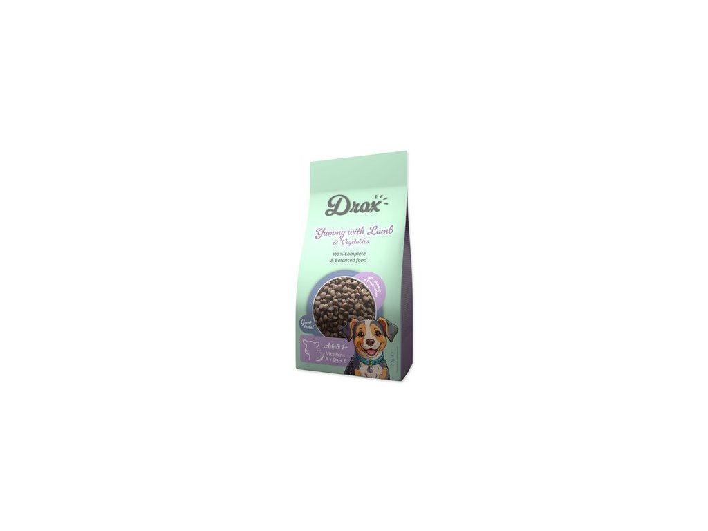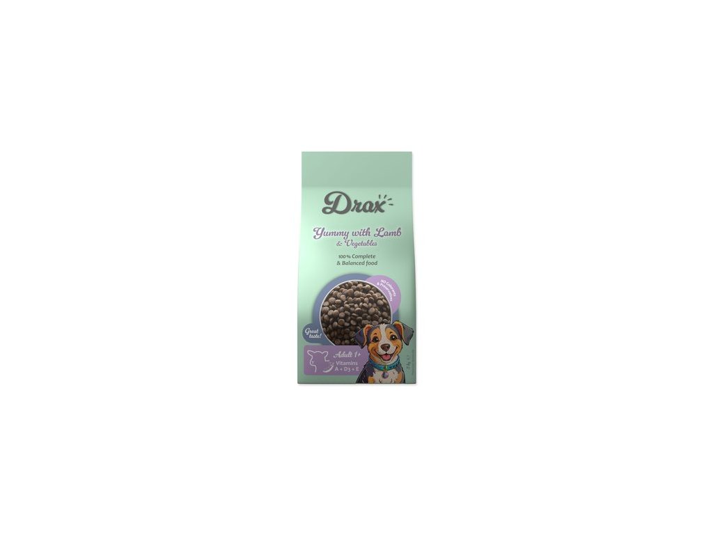 Granule Drax Adult 1+ s jehněčím a zeleninou – kompletní krmivo pro dospělé psy