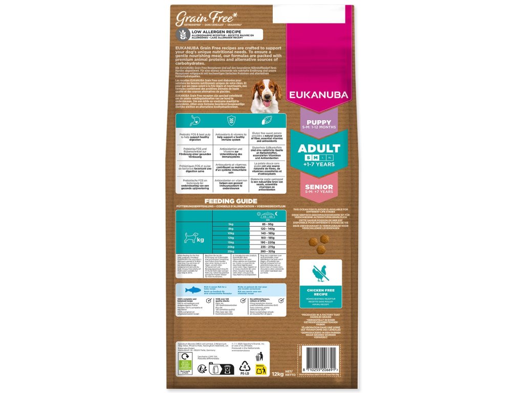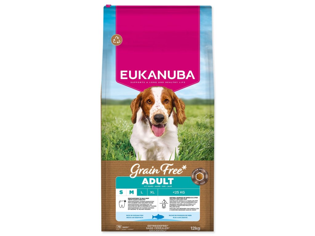 Krmivo EUKANUBA Grain Free Adult Small & Medium rich in ocean fish 12 kg