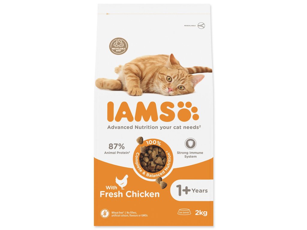 Krmivo IAMS for Vitality pro dospělé kočky je 100% kompletní a vyvážené, odborníky sestavené krmivo, které bude vašemu zvířeti chutnat a svědčit. Naše nová a vylepšená receptura pro dospělé kočky s čerstvým kuřecím masem je založena na kvalitních živočišných bílkovinách pečlivě vybraných tak, aby podporovaly sedm znaků zdravé vitality kočky. Aby byly kočky zdravé, aktivní a plné energie, obsahují naše lahodné receptury až 87 % živočišných bílkovin (z celkového obsahu bílkovin).