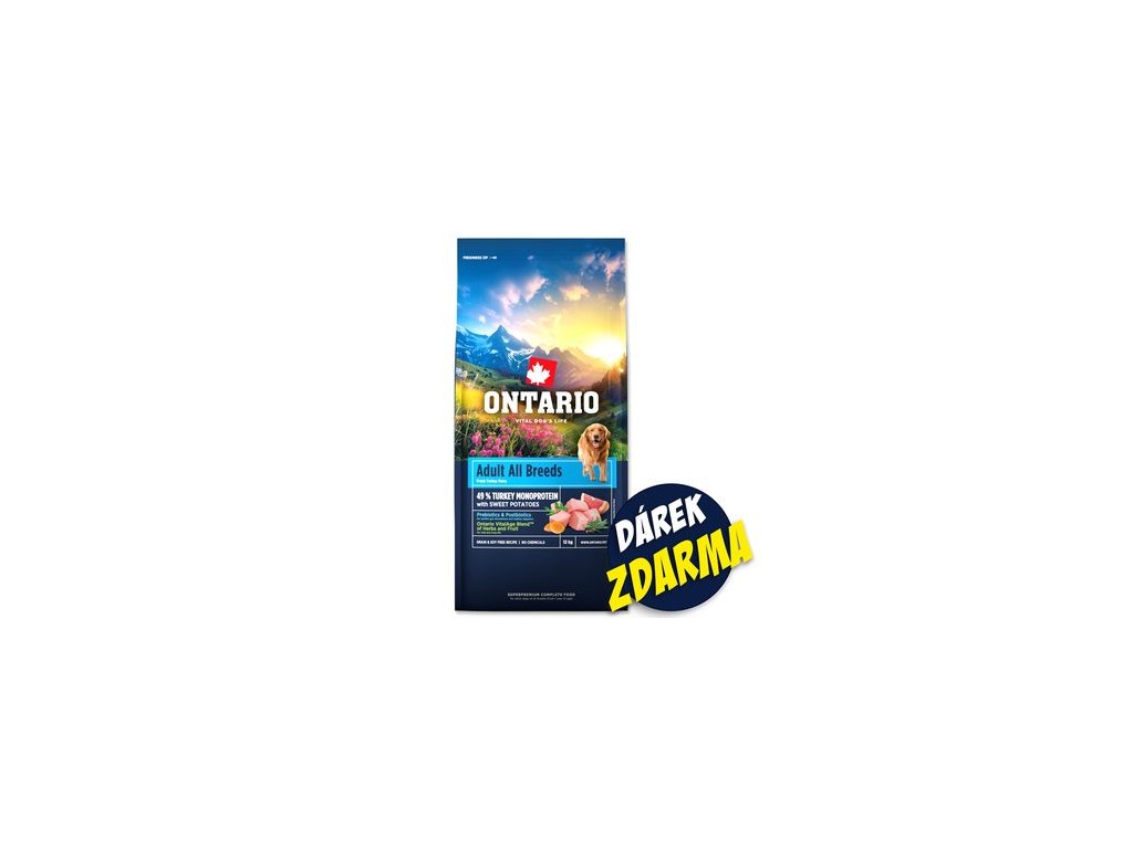 Krmivo Ontario Adult All Breeds Monoprotein Turkey 12 kg + 3 konzervy 400 g ZDARMA