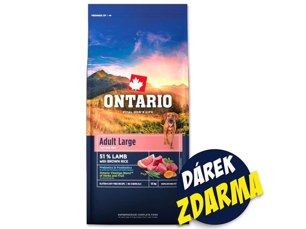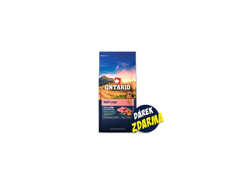 Krmivo Ontario Adult Large Lamb 12 kg + 3 konzervy 400 g ZDARMA