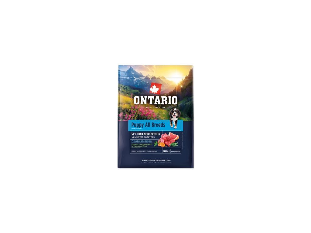 Krmivo Ontario Puppy & Junior All Breeds Monoprotein Tuna & Sweet Potatoes 2,25kg