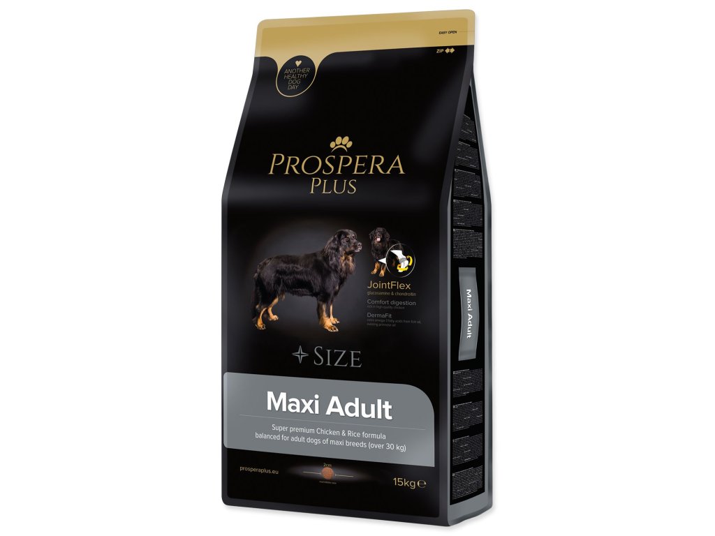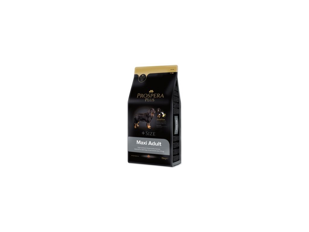 PROSPERA PLUS Maxi Adult je superpremiové krmivo určené pro dospělé psy velkých a obřích plemen, které díky obsahu chondroprotektiv zajišťuje správný vývoj kloubů. Vysoce kvalitní a lehce stravitelné kuřecí maso zlepšuje trávení a využitelnost krmiva, včetně všech živin. Ingredience obsažené v receptuře (rybí tuk, pupalkový olej, fruktooligosacharidy) posilují imunitu a podporují zdravou srst a kůži vašich pejsků.