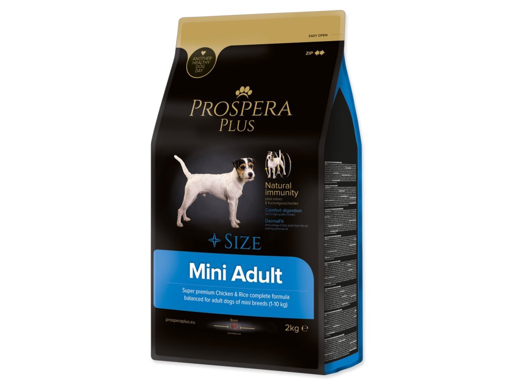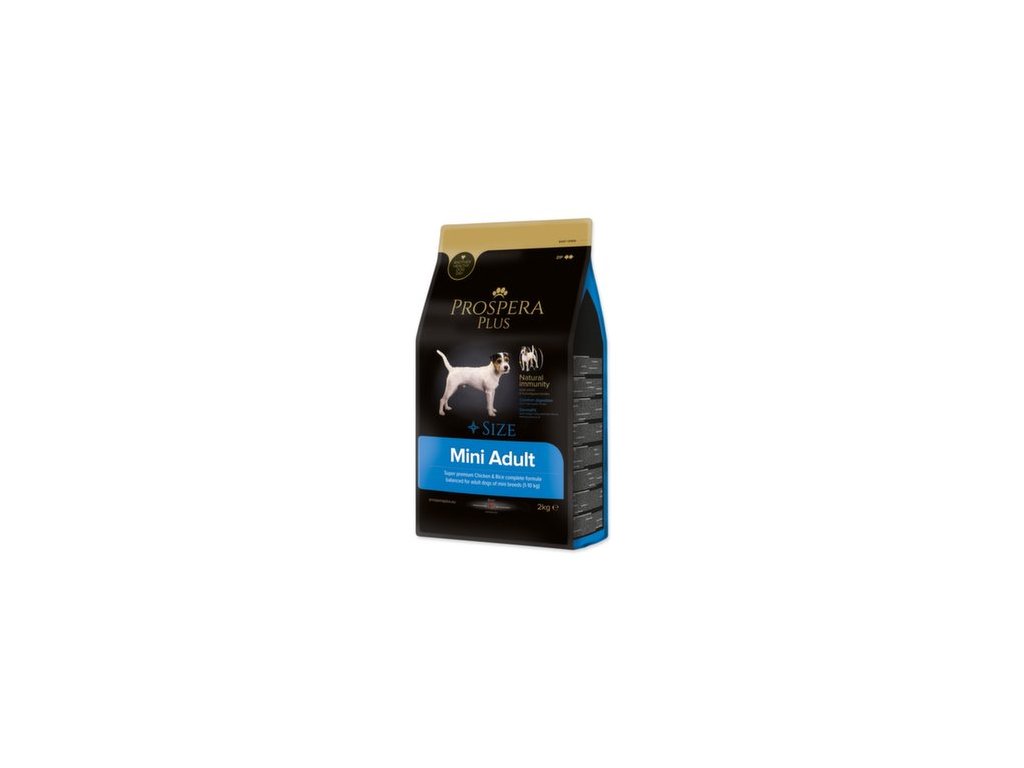 PROSPERA PLUS Mini Adult je superprémiové krmivo bohaté na vysoce kvalitní kuřecí maso, které zaručuje lepší trávení dospělých psů malých plemen. Ingredience obsažené v receptuře, fruktooligosacharidy a extrakt z kvasnic posilují imunitu Vašeho psa. Přírodní Omega 3 mastné kyseliny z rybího tuku společně s pupalkovým olejem přispívají ke krásné srsti a zdravé kůži.