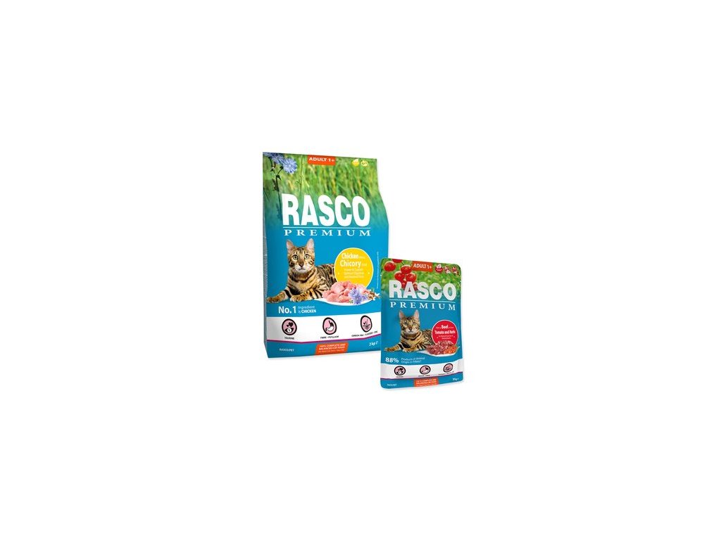 Krmivo Rasco Premium Adult kuře 2 kg + 5 kapsiček ZDARMA