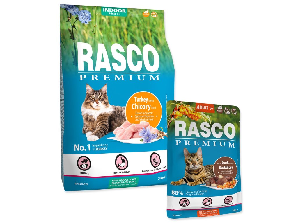 Krmivo Rasco Premium Indoor krůta 2kg + 5 kapsiček ZDARMA