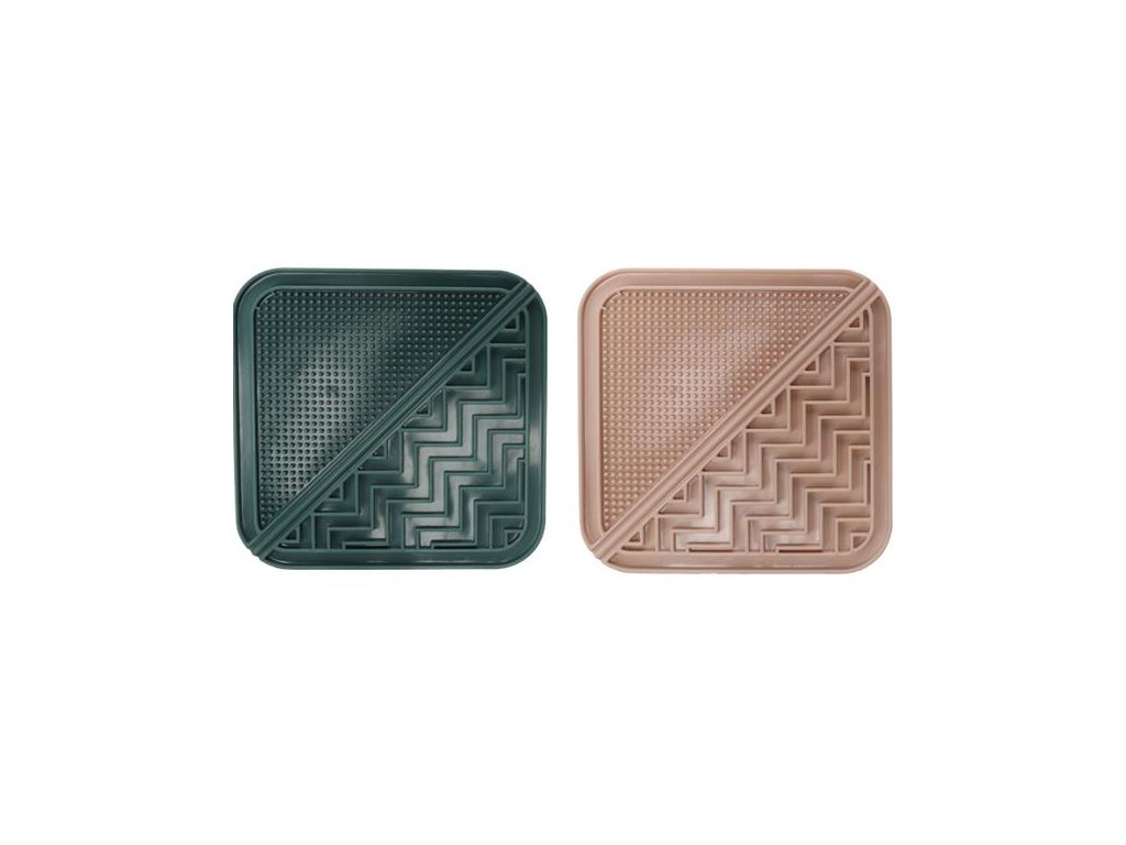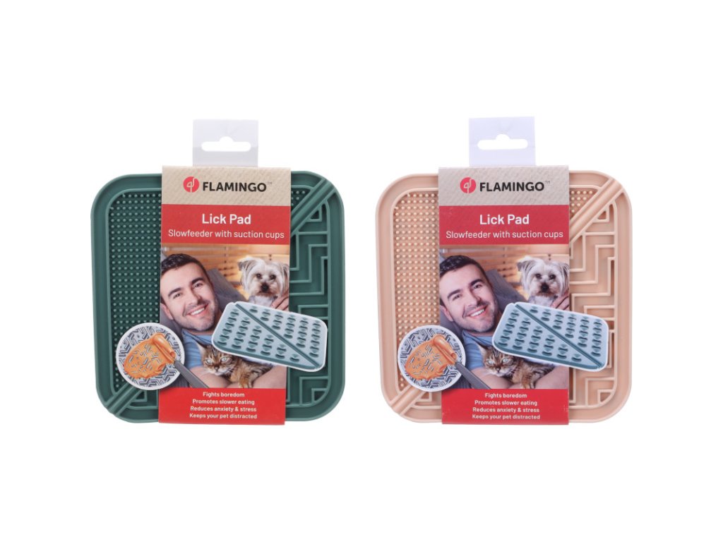 Lízací podložka Vami poskytne vašemu zvířecímu kamarádovi během jídla zábavnou výzvu. Podložka opatřená přísavkami je vyrobená z pružného silikonu. Lze ji natřít pastou či vlhkým krmivem a umístit na zem nebo i svisle na hladký povrch (dlaždice, vana apod.). Díky ohebné střední části lze umístit i do rohu např. sprchového koutu. Lízací podložka zabraňuje hltání, masíruje jazyk, zvyšuje proslinění potravy a může mazlíčka zabavit při procedurách, které nerad podstupuje, jako např. česání nebo koupání. Chcete-li krmení ještě prodloužit, můžete podložku naplněnou krmivem zamrazit. Čistí se snadno v myčce na nádobí.