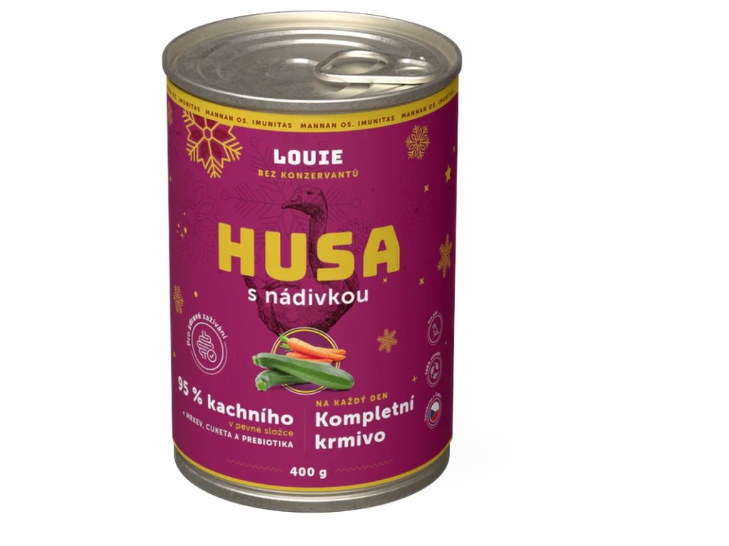 Šťavnaté kompletní krmivo obsahuje 95 % kachního a husího masa v pevné složce. Kromě masa obsahuje svátečně laděná konzerva změkčené kosti, které jsou přirozeným zdrojem vápníku a fosforu. Mrkev s cuketou zastupují rostlinnou složku pro podporu peristaltiky střev. Konzerva je obohacená o prebiotika – zdraví prospěšnou rostlinnou vlákninu – ve formě mannanoligosacharidů (MOS) a fruktooligosacharidů (FOS), které posilují střevní mikroflóru. Krmivo tím přispívá k normální funkci trávicího a imunitního systému.