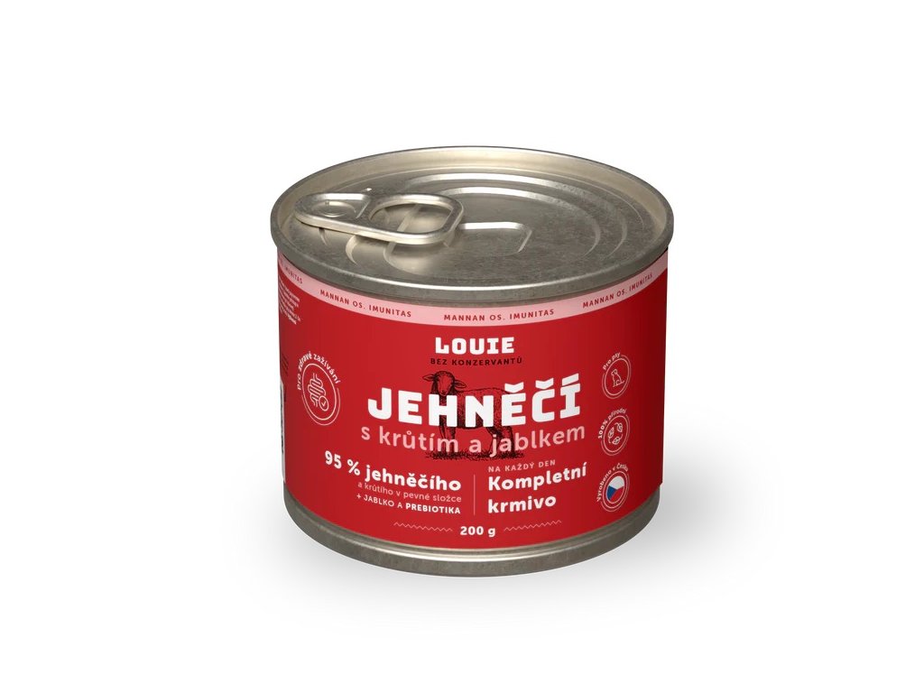 Klíčová slova: jehněčí konzerva pro psy, krůtí maso pro psy, Louie konzerva, krmivo bez obilovin, masová konzerva pro psy, přírodní krmivo pro psy, jablka pro psy.
